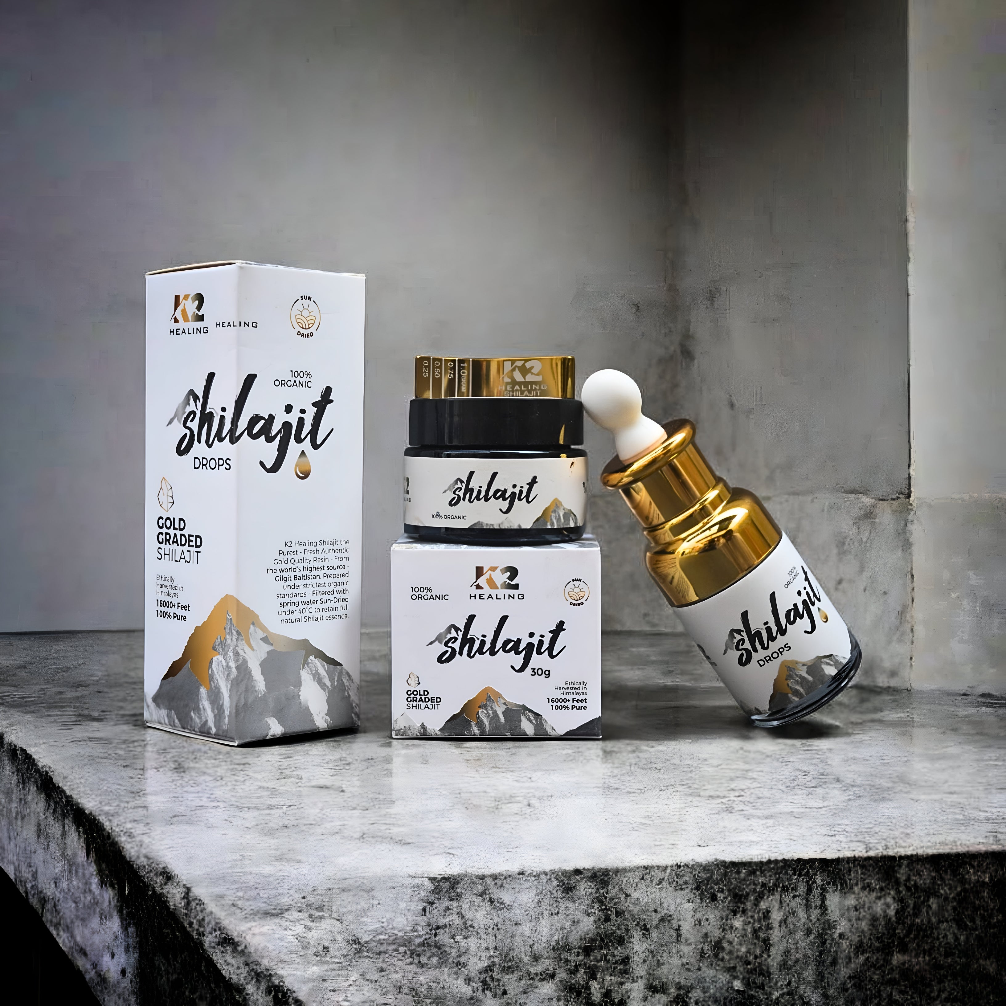 The power of nature with K2 Healing Shilajit, a potent, mineral-rich resin sourced from the pristine heights of the K2 & Himalayas. Packed with over 85 essential minerals, fulvic acid, and antioxidants, this ancient superfood boosts energy, enhances stamina, and promotes overall well-being.